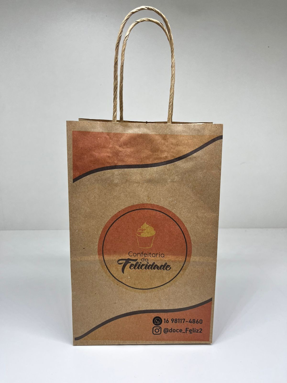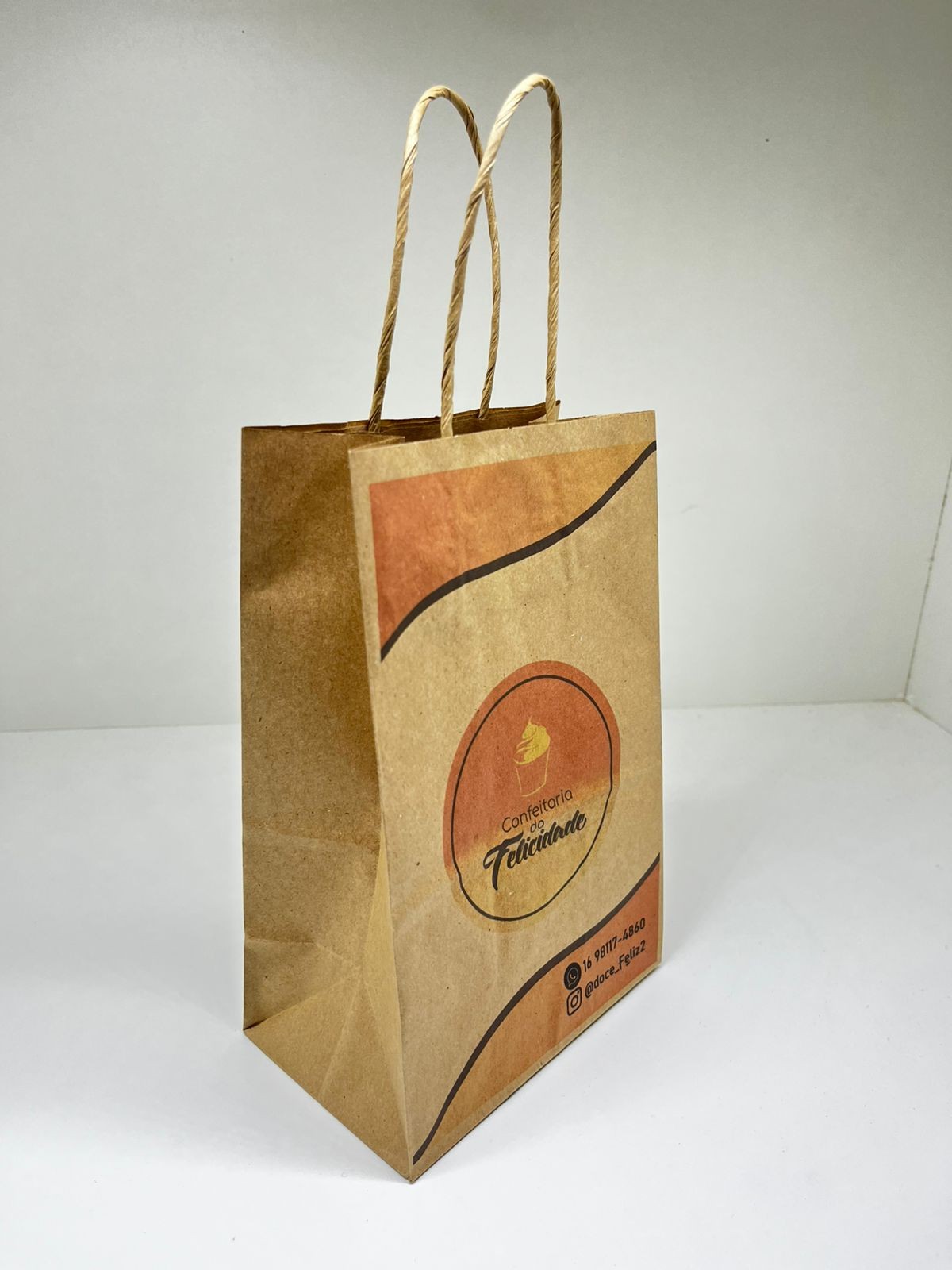 Sacola Kraft 14x21 com alça, 70 gramas colorida, sem limite de cores.